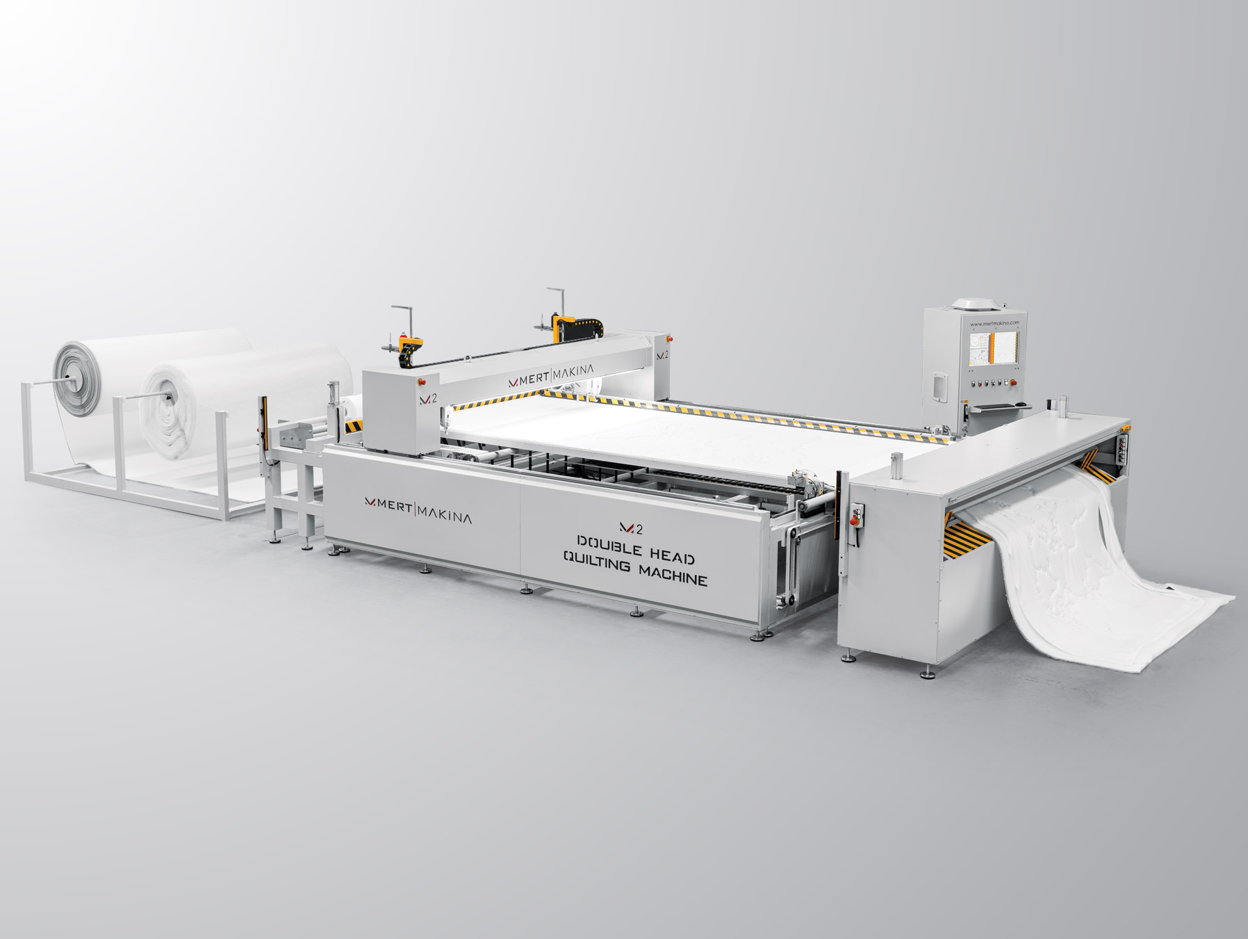 Mert Makina sizlere dünyanın en hızlı rulo beslemeli makinası olan M-2 Çift Kafa Kapitone Makinasını sunmaktan gurur duyar. Yıllardır kapitone makinası üzerindeki edindiğimiz tecrübeler ile üretmiş olduğumuz makinamız 3500 devir hızında sürekli dikiş yapabilme kabiliyetine sahiptir. Dürkopp Adler 867 dikiş makinaları ile kalın ve ince malzemelerde mükemmel dikiş kalitesi sunar. Latex, visco, sünger, memory foam, deri, yün gibi malzemelerde hatasız dikiş özelliği bulunmaktadır. Güçlü şasesi sayesinde uzun yıllar hatasız çalışabilir. Özel olarak geliştirmiş olduğumuz en ve boy kesim sistemi sayesinde milimetrik kesim yapabilir. Yatak, ev tekstili, mobilya ve otomotiv sektörü için özel olarak tasarlanmış makinamız dünyanın en hızlı makinası olması sayesinde sektörde en çok kullanılan makinadır.